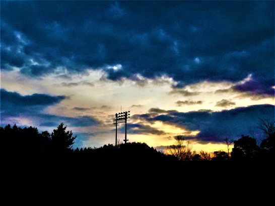 17日に到着した「愛染帖」。すぐ選に取り組んだがパソコンへのインプットが残っていたので本日完了。これは2月号へ発表。12月号に掲載しているものからベスト10をご紹介。写真、本日の午後5時頃の総合公園にて、夕映えに向き合った照明塔が「あんたには勝てまへん…」とうなだれていた。本日、昼前散歩は出来ず。夕刻のみで6,121歩。