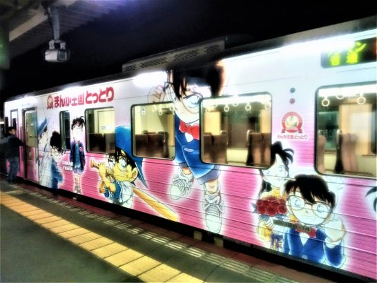 終了後、忘年会があったが、当初からの予定通り失礼。三ノ宮にて弁当&ツマミ、そして、ワンカップ「黒霧島」&赤ワインをゲットして、17時44分発の「スーパーはくと11号」に乗車。腹ペコだったので、すぐに1人宴会。上郡あたりですべて平らげてしまった。倉吉にて米子行き普通列車に乗り換え(写真2、名探偵コナンのラッピングカーだった)。帰着は9時20分。「残り福」の皆さん、お世話になりました。お疲れの出ませんように! 愉快な句会、サンキューべりマッチでした~~~!