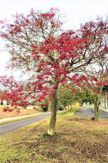 街路樹の真っ赤な実 すごいですね。実のつきかたが 半端じゃない❗