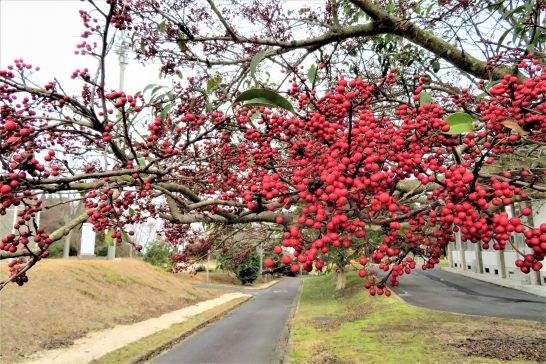 街路樹の赤い実が凄いですね。