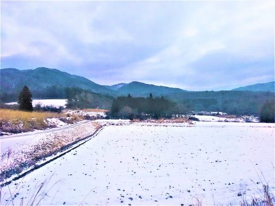 はい、鳥取県と岡山県の県境のトンネル(犬狭トンネル)を抜けたら雪景色でした。この辺りの標高は500メートル前後。上にも書いていますが、ずっと積もっていた根雪ではなく昨夜から今朝方にかけて降った模様です。帰路の夕刻には半分ぐらい地肌が見えていました。