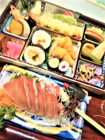 本日の参加者合計13名(Kご夫妻はご招待。3馬鹿大将の他は8名)。ツマミは取り寄せた弁当プラス刺身(写真)。アバウト4時間(追加1時間は別料金徴収・全員異議なし)、愉快に飲んで騒いでワイワイ。8時半ごろバイバイ! おしんちゃんお世話になりました~。ご参加下さいました皆さま、サンキューべりマッチでした~~!