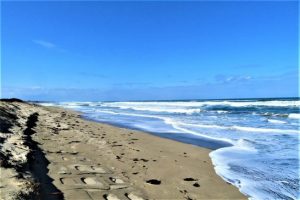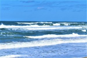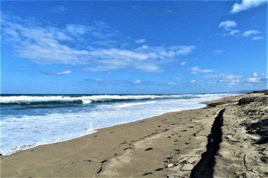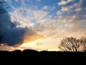 写真上。倉吉へ向かう途中。琴浦町から北栄町に入ったところの日本海。1、イーストサイド。2、ウエストサイド。3、波濤クローズアップ。 写真下、午後5時10分、総合公園外周の農道からの夕景。本日7,314歩。