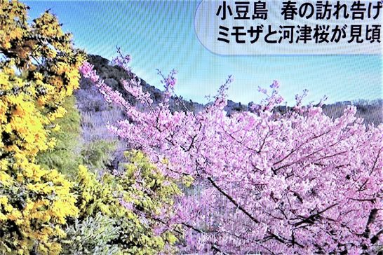 写真上:本日の夕刻のニュース(どこのTV局だったか?)で、小豆島の「ミモザと河津桜」が見ごろと言っていた。綺麗だったのでパチリ。本日8,155歩。