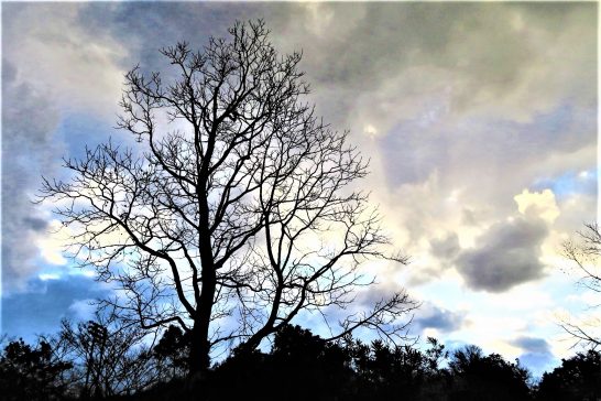 本日、朝からずっと冷たい風。だが、昨日散歩していないので、昼前と夕刻に頑張った。が、いずれのときも「駐車場まで、あと7分…」ぐらいのところでバラバラとミゾレが降ってきた。傘は持っていなかったが、フード付きのコートで助かった。本日8,077歩。写真上:夕刻散歩にて。細かい枝先がウイルスの触手のようで、チョイと不気味。