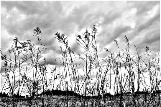 モノクロ写真に恐怖を感じます、セイタカアワダチソウでしょうか、間違っていたらごめんなさい。花言葉は、元気 生命力です。