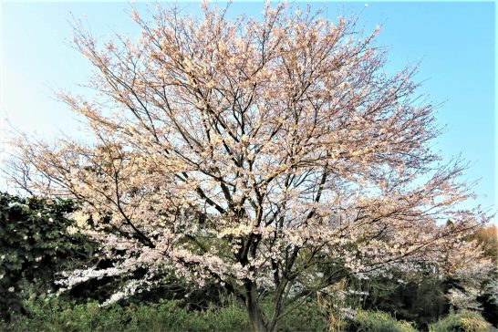 昼前散歩は出来ず。夕刻散歩では総合公園テニスコート北の【私の桜】が満開(写真1)。西日を受けてピンクが鮮やかだった。本日4,076歩。