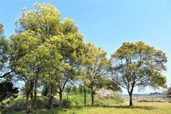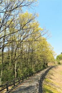 写真:若葉が光る2枚は本日の総合公園にて。桜も本日、「学びタウンとうはく」南の道路沿い。いずれも風にキラキラ煌いていた。夕刻は強風になり散歩はパス。4,617歩。