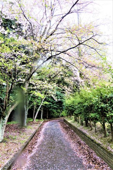 本日、朝から雨。気温も昨日に続いてこの時期の最高気温(18℃)より5℃以上も低くて肌寒い1日だった。終日デスクワークで閉じこもっていようかと思ったが、昼前には傘を差して散歩。総合公園では雨に濡れた花びらが遊歩道をピンクに染めていた(写真上)。夕刻には雨が本降りになってきたので散歩はパス。3,951歩。