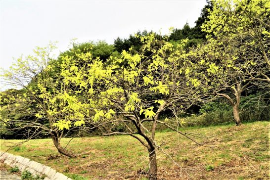 本日も昼前散歩はやめて、夕刻に総合公園の半周コースをぶらぶら。写真は鮮やかな柿若葉。本日3,890歩。