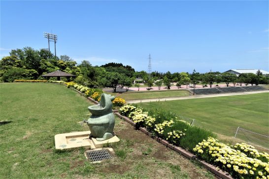本日、朝方は俄雨が降ったりしていたが、昼前から快晴になってきた。ただ予報通り風が強かった。が、寒くは感じず初夏らしい爽やかさであった。苗屋さんが午前中にサルビアを持って来てくださったので、午後からプランターに植え込み。これまでなら1時間余りあれば充分に完了していたが、しゃがんだり中腰の姿勢をすると腰が痛いので、椅子に腰かけたり横着な遣り方で…。結局2時間近くかかってようやく完了(写真1、水を流した道端の後片づけはやっていない)2、総合公園にて。カエルの水飲み場も暇そうだった。3、総合公園遊歩道。陽射しが強くて木陰を歩くようになってきた。本日4,952歩。