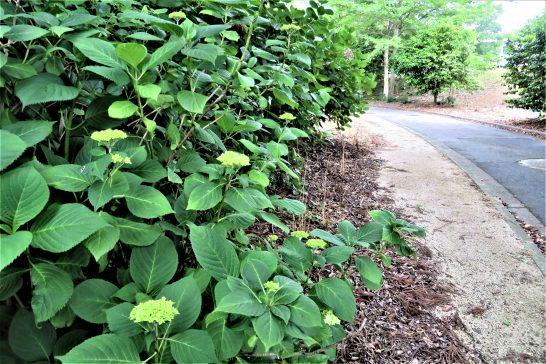 本日も終日曇天だったが、気温は高くて、少し蒸し暑かった。4,214歩。        写真、総合公遊歩道傍のアジサイのツボミ。2、拙宅近くの廃屋入口に咲いていた「ど根性ペチュニア&ど根性クローバー」。この建物、25年ほど?前までは「メルヘン」というスナックで、私もしばしば飲みに行ったが、ママさんが辞めた後は喫茶店になった。 しかし、それも長続きせず、15年ほど前からは建築事務所になっていた。が、現在は使っておらず放置されたまま。私にもう少し時間とパワーがあれば、リニューアルして高齢者専用酒場「シニアクラブ」のようなものをやってみたいのだが…。