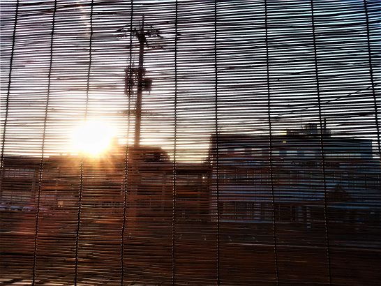 意外な 写真❗スダレ越しの朝日 なんか、素朴で いいですね。