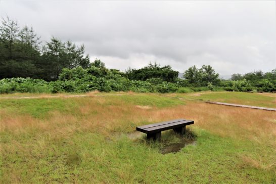 ベンチの周囲、まったく同じです。芝生というか草の色が少し違ったところがあるので、周囲が高くなっているように見えるのかもしれませんね。