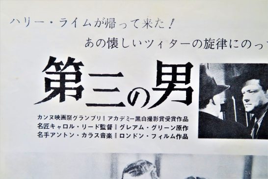 第三の男(The Third Man)は1949年制作のイギリス&アメリカ合作。 原作・脚本:グレアム・グリーン。監督:キャロル・リード。出演:オーソン・ウエルズ。ジョセフ・コットン。アリダ・ヴァリ。音楽(ツィター演奏):アントン・カラス。日本での公開は1952年で私が10歳の時。やはり青年のときリバイバルで観たのだろう。そのことはパンフレットにも「ハリー・ライムが帰って来た! あの懐かしいツィターの旋律にのって…」と書かれている。この「ツィターの旋律」を聞くと、今でもあのラストシーンが蘇ってくる。「明日に向かって撃て」のラストシーンは衝撃的だったが、この「第三の男」のラストは詩情豊かで切ないシーンだった(表紙の顔はハリー・ライムのオーソン・ウエルズ。その下、ラストシーン)。