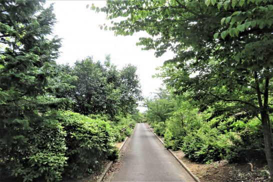 本日、梅雨らしい曇天だったが雨は降らず、昼前と夕刻に少し歩いて4,171歩。写真1は、いつもの総合公園遊歩道のゆるい坂道(写真では上り坂)。