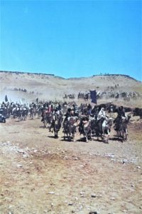 アラビアのロレンス(LAWRENCE OB ARABIA)1962年公開。イギリス・アメリカ合作。監督は「ドクトル・ジバゴ」と同じデヴィッド・リーン。出演:ピーター・オトゥール。アンソニー・クイン。オマー・シャリフ。アレック・ギネス。音楽:モーリス・ジャール。日本公開は1963年。パンフレット表紙にOS劇場とあるが、この梅田近辺はその頃(60~40年前)の私のテリトリーでしばしば出かけてはブラブラしていた。 ・アラビア半島の砂漠地帯を舞台にして、オスマン帝国からのアラブ独立闘争を壮大なスケールで描いている。印象的なシーンはいくつもあるが、遥かな点のような蜃気楼が少しずつ近づい人影になってくるシーンは3分間以上のロング。全編にわたって男臭い男ばっかりで女性は1人も出てこなっかったのではないか?