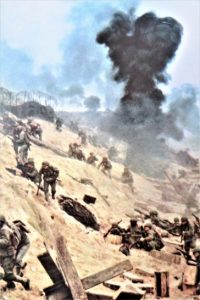 【北アフリカから戻ってきた独陸軍B軍団長ロンメル元帥は、イギリスに面した海岸線で地雷の敷設が400万個と聞いて、600万個に増やすよう檄を飛ばしていた。その時ロンメルは「あの水平線の向うに大軍がいる。今か今かと出撃を待っている。しかし一兵たりとも上陸はさせない。あの水際で撃滅させるのだ。上陸する最初の24時間が極めて重要で、その時は連合軍にとっても我々にとっても一番長い日となるだろう。」と語った】(ウィキペディアより)