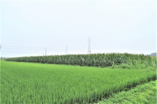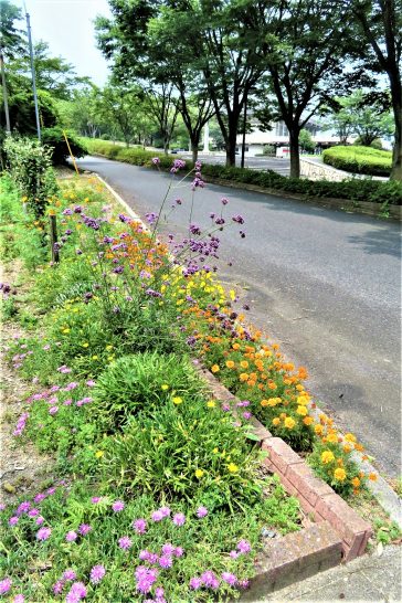 昨日も猛暑だったが、今日のほうが暑く感じた。昼前散歩では陽射しが首筋にジリジリ。加えて蒸し暑くて汗が滲み出てくる。参った参ったと早々に退散。 写真1、手前の稲はすくすく育っていたが、後ろの飼料用のトウモロコシが先月の日照不足で痩せたまま。2、総合公園エントランスの小さい花壇。