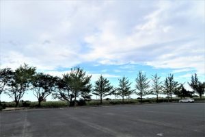 写真1、昼前散歩の総合公園駐車場の公孫樹。ふと気がついたら銀杏がいっぱい実っていた。2、夕刻の同駐車場にて。ぐっと雲が増えていた。右端マイ・プリウス。