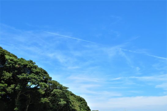 写真1、昼前散歩にて、鮮やかな飛行機雲。2、夕刻散歩。栗の毬が大きくなっていた。〔本日の仕事と歩数〕。センマガ10月号向け「名句鑑賞」手直し後メール送稿。大山滝句座メンバーへ連絡事項及び誌上大会案内など段取り。5,494歩。