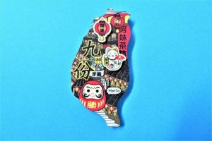 この「九份」は「千と千尋の神隠し」の舞台になった懐かしい街並みがあるので、日本人観光客がいっぱい。ですから、このマグネットの絵柄も、日本人好みの「必勝ダルマ」や「招き猫」だと思います。