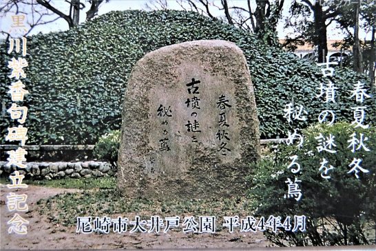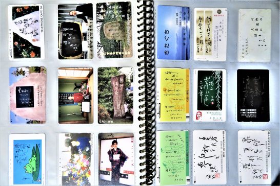 上の写真、☎(Ⅰ)の18枚と、☎☎(Ⅱ)の右側6枚の合計24枚は川柳関係のテレホンカード。それぞれ句碑建立記念や大会での受賞記念で創られたもの。その中の1枚は黒川紫香先生の句碑建立記念・平成4年4月、尼崎市の大井戸公園。(写真下)。 (Ⅰ)~(Ⅵ)の合計はジャスト100枚でチョッとびっくり! ほとんどは50度だが、まれに105度のが混じっている(写真下の2~3枚目のもの)。使用済みのはパンチ穴が開いているが、ざっと見たところ半分以上が未使用。勿体ないようだが、自分で購入したものは少なく、ホールインワン記念で友人から貰ったり、メーカーの宣伝用で貰ったもの。 〔本日の仕事と歩数〕しんぶん赤旗「読者の文芸」選考、他。5,622歩。