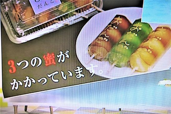 三蜜団子、ご覧になりましたか。そうするとローカルニュースではなくて全国版だったのかな?「おっ、おもしろい!」と思って、あわててパチリと撮りましたが、どこが売り出したのか聞いていませんでした。
