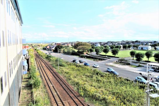 写真1、会場の【まなびタウンとうはく】4Fのテラスから東側(鳥取方面)をパチリ。両側からセイタカアワダチソウに守られているレールは山陰本線。カメラの後ろが浦安駅。2、夕刻の散歩道でカマキリ君が睨んでいた。このままでは轢かれてしまうので掬って草むらに放ってやった。〔本日の仕事と歩数〕大山滝句座段取り・開催。(7,692歩)。
