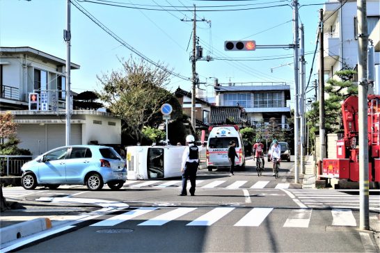 本日、昼前散歩から帰りかけたとき「ウ~ウ~~~!」と消防車?救急車?のサイレン。帰宅したら、数か月前に事故があったばかりの交差点でまた事故。救急車も消防車も来ている。事故車は写真の青い車と、すぐ右で横転している白い車。青い車の右側が大破。 消防車が止まっている家の右が眼鏡屋でその右が拙宅。ご近所の皆さんも家内も外に出ていて、口々に「大きな音がした~!」「ビックリした~!」。訊けば「青い車はMさんの奥さんで、白い車はトピアの店員さん」とのこと。Mさんの奥さんは高齢の方で私もよく知っている。トピアは拙宅前のマーケットで、店員さんは大山乳業へ弁当を届けに行く途中だったとのこと。二人とも意識はしっかりしているが救急車で運ばれたとのこと。 ・私が知っているだけでもこの交差点で6~7回はぶつかっている。どちらかが信号を見落としたに違いない。【青信号で安心して走っている車へ、横から信号を見落とした車が突っ込んでくる】というパターンばかり。いっそのこと、【両方とも黄色の点滅にして、両方とも一旦停止】にした方がいいのかもしれない。 ・〔仕事と歩数〕毎日新聞とっとり柳壇選評。6,024歩。