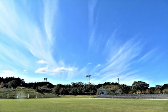 本日、朝夕は冷えたが昼間は暖かく、爽やかな秋晴れだった。写真1、昼前散歩にて。総合公園のサッカーグランド上の雲。2、同公園内の紅葉。3、夕刻散歩にて。午後5時過ぎの茜雲。〔仕事と歩数〕コロキウム鑑賞。5,354歩。