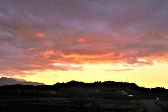 本日は爽やかな秋晴れのようですね。嬉しいことです。が、このように雲が一つもないときは夕焼けもアッサリ。夕焼け雲が綺麗に見えるには、雲があって太陽も出て、そして、互いの位置関係となかなか条件が難しいものです。