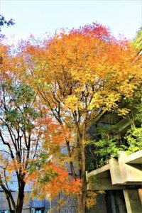 【楷の木】江戸時代まで「楷の木」は日本には存在していませんでした。日本に初めて移入されたのは、大正4年(1915年)でした。当時、農商務省林業試験場の初代場長であった白沢保美博士が中国を訪れ、孔子の墓所から「楷の木」の種を採取し、播種、育苗されました。その後、日本国内の孔子や儒学にゆかりのある学校(湯島聖堂3本(雄)、足利学校1本、閑谷学校2本(雌)、多久聖廟1本(雄)など)に寄贈されたのが最初です。楷の木は、和名で牧野富太郎博士が「孔子木」と命名しましたが、現在では「楷の木」または「楷樹」と呼ばれております。 ・ ・ 風土に合っているためか閑谷学校(岡山県)の楷の木が最も大樹に育っています。閑谷学校の中心である聖廟の両脇に二本の木が植えてあり、どちらも幹の太さが2m、高さ約13mに達しています。孔子にちなんで、閑谷学校では「楷の木」を『学問の木』と呼ぶようになりました。つまり、日本で最初に『学問の木』と呼んだのは閑谷学校が最初です。 〔仕事と歩数〕山陽カルチャー。(4,203歩)