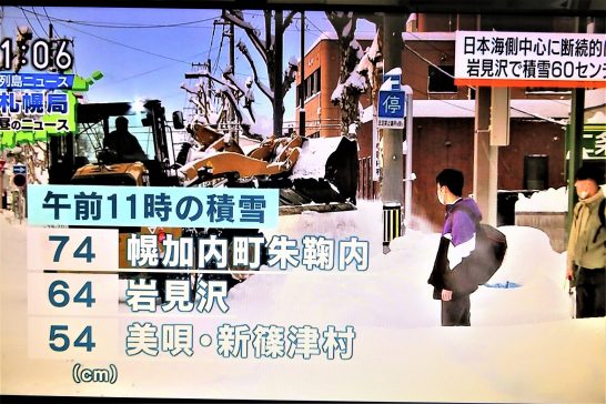 写真1、今日の昼前散歩の総合公園にて。このように快晴だったが、夕刻散歩のときは黒い雲が覆ってきてときどきパラパラ。夕映えも撮れなかった。いま午後6時前だが本降りになっている。2、NHK総合TVでは午後1時から「各地のニュース」をその土地の局から実況している(毎日ではないが…)。本日の札幌局からは「岩見沢で積雪60センチ」と言っていた。日本は広い。山陰の寒さ程度で委縮していてはバチが当たる。 ・〔仕事と歩数〕塔社常任理事向け連絡書類作成。6,351歩。