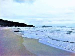 昨日の浦富海岸、写真では見えませんがポツポツ雨が降っていましたので、急いで波打ち際まで駆け下りて撮りました。デジカメを忘れたのでスマホでした。