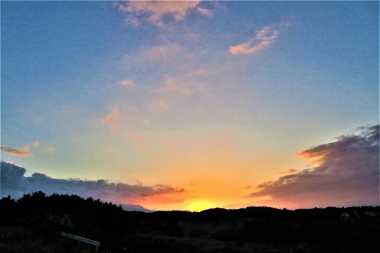 タイヤ交換は、もう何年も前から「K自動車」にお世話になっている。今シーズンも「混み合う前に、早目に…」と思って、1週間ほど前にFAXで依頼していたが、忙しいのか音沙汰なし。来週から寒くなって「雪が降るかも」という予報なので「プッシュするか…」と思っていたら、昨夜「明日9時半頃にお伺いします」と電話が入ってやれやれ。今日、取りに来てくれたときに「ついでにエンジンオイルの交換も…」とお願い。戻って来たのに乗ったら、やっぱり少しタイヤ音が高かった。が、すぐに慣れるだろう。来年3月中旬まで3ヶ月余りの辛抱だ。写真1、昼前散歩の雑木林の細道。2、夕刻散歩の夕映え。 〔仕事と歩数〕山陽カルチャー資料作成。8,121歩。