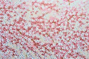 写真1、夕刻散歩にて、小雨だったので傘を差して歩いていたらアラレに変わってバラバラ。たちまち遊歩道が白くなった。だが、すぐにまた雨に変わって溶けたが、明日の予報は「風雪強し」とのこと。北国と比べると甘っちょろいものだが…、お手柔らかに願いたいものである。 2、3、4、満開の桜。友禅和紙の在庫が無くなってきたので、先週末に大阪の問屋に依頼したのが到着。その内の3枚。ちょっと気が早いが、和紙での花見。5、今年の漢字は大方の予想通り、三密の「密」。来年は「快」とか「朗」とか「爽」とか「賀」ど、明るく前向きの字になって欲しいものだ。 ・〔仕事と歩数〕しんぶん赤旗「読者の文芸」再チェック後メール&投函。3,639歩。