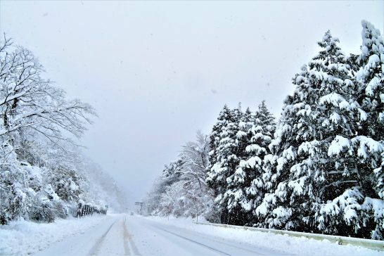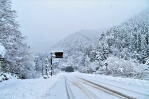 犬狭峠の前後は雪を被った樹が綺麗で、もっと撮りたかったのですが、路側帯で停める所が少なくて苦労しました。後続の車が無いのを確認して、素早く降りてパチリ、でした。