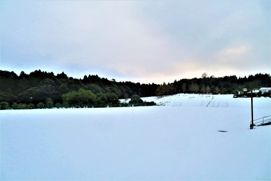 写真1、私の車は自由に動けるが、右側の家内のはノーマルタイヤなので動けない。月曜日に免許更新のため「高齢者講習」を受講しなければならないので、昼前散歩の代りに15分ほど除雪。夕刻散歩のついでにまた15分ほど除雪。これで動けるようになった。 写真2、どこから来たのか屋根に50センチ以上積もっている車。 夕刻散歩のために総合公園まで走ったが、細かい雨が降ってきて風も冷たいので戦意喪失。サッカー場は白一色。背景は僅かな夕映え(写真3)。 ・ 〔仕事と歩数〕川柳塔の「愛染帖」選考&PCインプット。3,147歩。