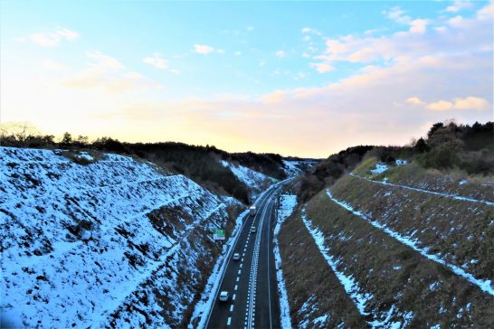 はい、しばらく雪雲に覆われていたので夕焼けも見えませんでした。久しぶりの青空が見えたので夕刻散歩のときに「東伯第3跨道橋」へ出かけましたが、位置が悪くて写真1の有り様。引き返して、いつもの位置からパチリでした。
