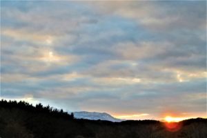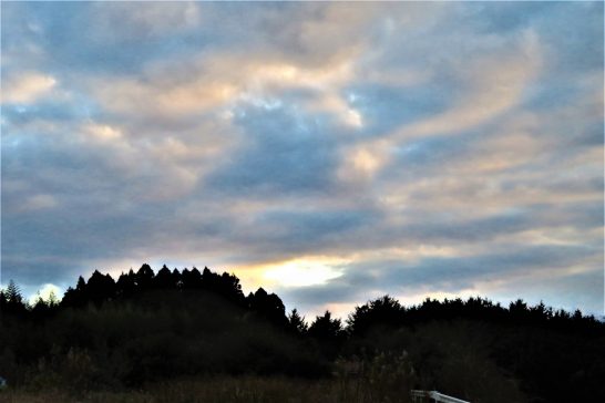 この写真を撮ったのはまだ4時半頃で、雲と雲の間から青空が見えていました。でも、西空は2枚目の写真のように、雲のほうが多い感じでした。
