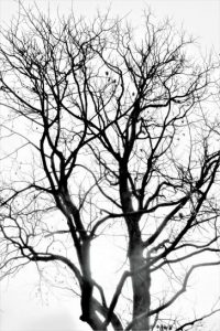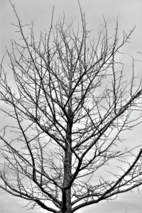 白黒写真にみえる 枯れ木のシルエット……いいてすね。