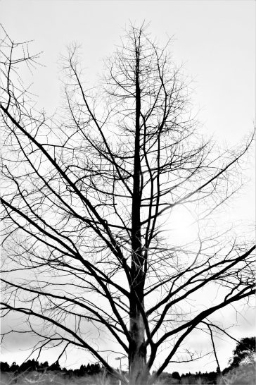 白黒写真にみえる 枯れ木のシルエット……いいてすね。