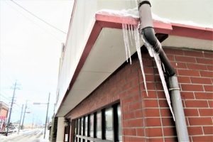 写真1、午後4時半頃の総合公園にて。2、公園から帰宅してフト見ると店の壁から30センチ以上もある長いツララ。樋の接続が悪くて隙間から雪解け水が漏れたらしい。 〔仕事と歩数〕川柳マガジン懸賞川柳2020【霜月賞】選考。2,343歩(玄関前と駐車場の除雪でモタモタ動いただけ)