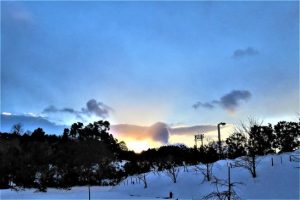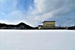 写真1、昨日のツララは叩き落としたが、今朝見るとまた40センチほどのがぶら下がっている。樋の接続が外れているのだ。天候が回復したら直してもらわなければならない。 写真2、投句を済ませてから外出。句会場の直ぐ西の「未来中心」。と、左の小高い山は標高204メートルの打吹山。手前の広場は美術館建設予定地。倉吉から帰宅してから総合公園へ出かけて少しだけ散歩。雪景色の向こうに夕映えが少し見えた(写真3)。・ ・ 〔仕事と歩数〕打吹川柳会向け作句。誌上大会向け作句。4,564歩。