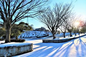 夕刻散歩で総合公園へ行きましたら、上の写真の雪もほとんど溶けていました。が、日当たりの悪い遊歩道はまだ残っていました。その写真、先ほどアップしましたので、またご覧ください。