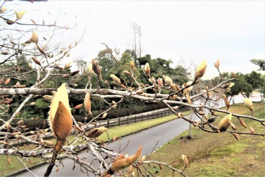 本日、最高気温14℃ほど?平年より高いので、それほど寒くはなかったが午前中は雨だったので昼前散歩はパス。ようやく止んだ夕刻に少しだけ散歩。ハクモクレンの蕾が開いて白い花が見えてきた(写真1)。桜の蕾もふっくら膨らんできた(写真2)。 〔仕事と歩数〕(一社)全日本川柳協会「第13回川柳文学賞」選考着手。3,320歩。