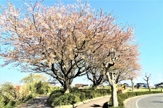写真下は、「まなびタウンとうはく」南道路沿いの桜。満開になるのが遅かったので、まだ半分ぐらい残っていて姥桜の美しさを誇っている。〔仕事と歩数〕まなびや川柳会「本日の没句」拝見。4,521歩。