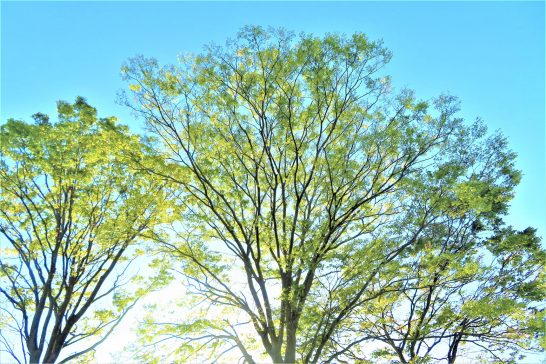 本日、昨日の悪天候と打って変わって爽やかな快晴。昼前と夕刻に少しずつ散歩。写真は夕方5時過ぎ。西日を受けた新緑。〔仕事と歩数〕愛染帖PCインプット。4,130歩。