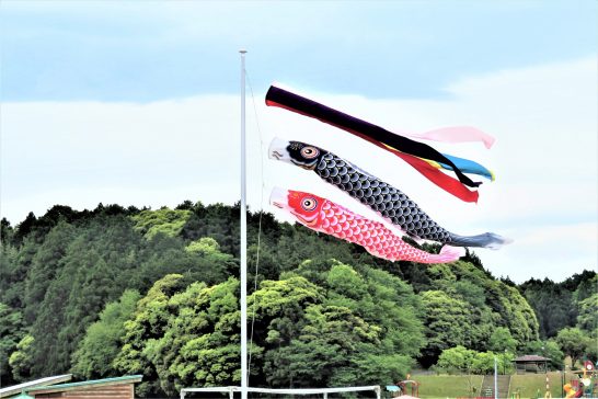 子供の日は過ぎたが、総合公園東側の「やばせこども園」のカップル🎏は元気よく泳いでいた。今日の昼前、この下で紙の兜をかぶった子供たちが先生から記念写真を撮ってもらっていたが、白いフェンスが邪魔でうまく撮れず、鯉のぼりだけパチリ(上)。